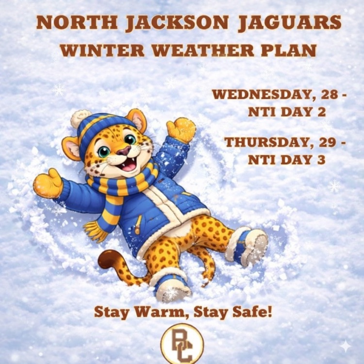 ❄️ NTI Day Two ❄️ Teachers will continue to communicate expectations for NTI work and will be available to support students as needed throughout the day. We understand that some families may still be experiencing power outages or other weather-related challenges. Please know that schools will work with families to ensure students have adequate time to complete any missed assignments once we are able to safely return to school. 📸 We’d love to see how our Jaguars are enjoying the snow! Thank you for your flexibility and continued support—stay safe and warm! 💙💛